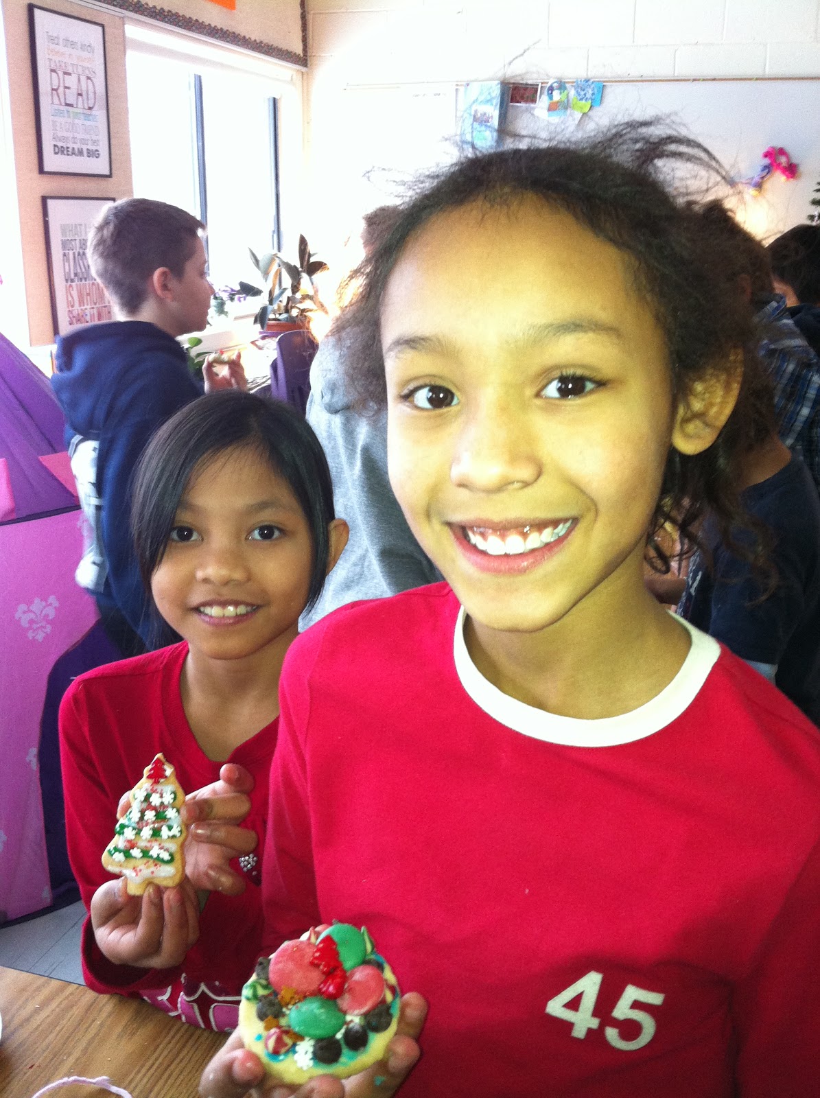 When they were done, we got to eat them. The cookies tasted awesome and delicious! We had a lot of fun doing this activity. It was extraordinary and amazing!